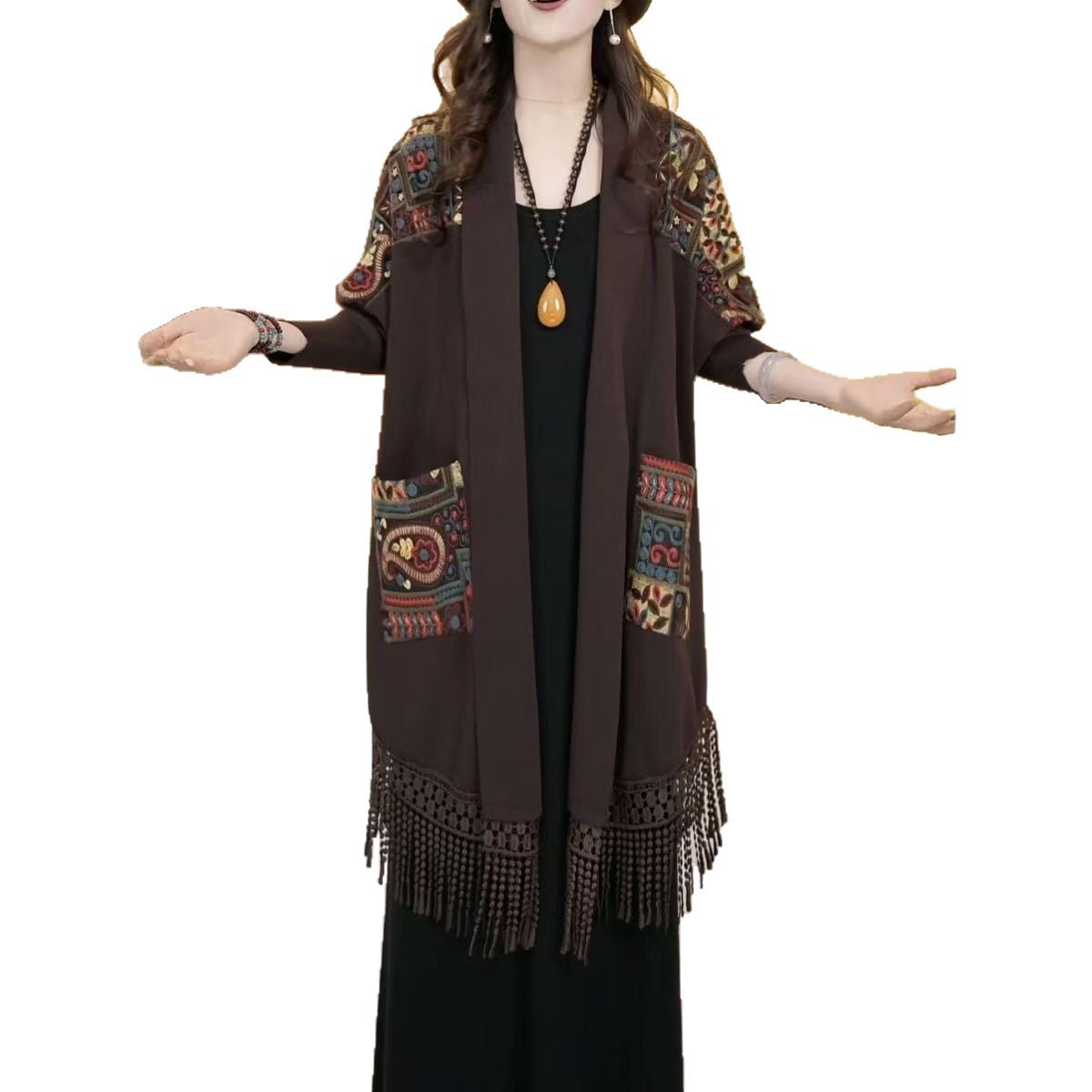 Пакетът включва: 1×Шик бохо кардиган с пискюли по подгъва