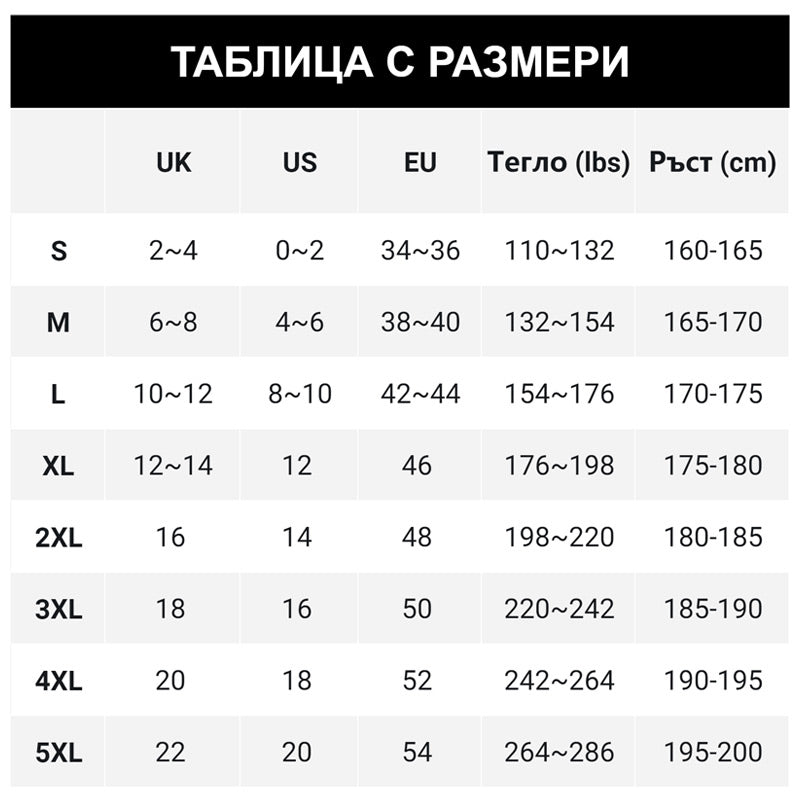 РАЗМЕРНА ТАБЛИЦА