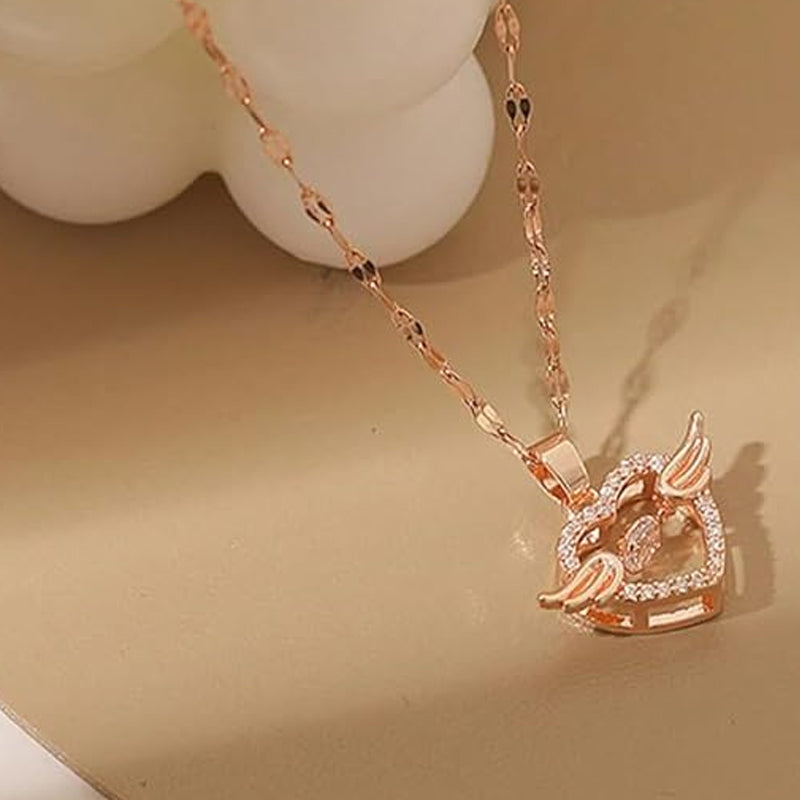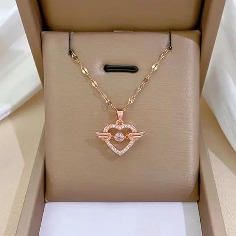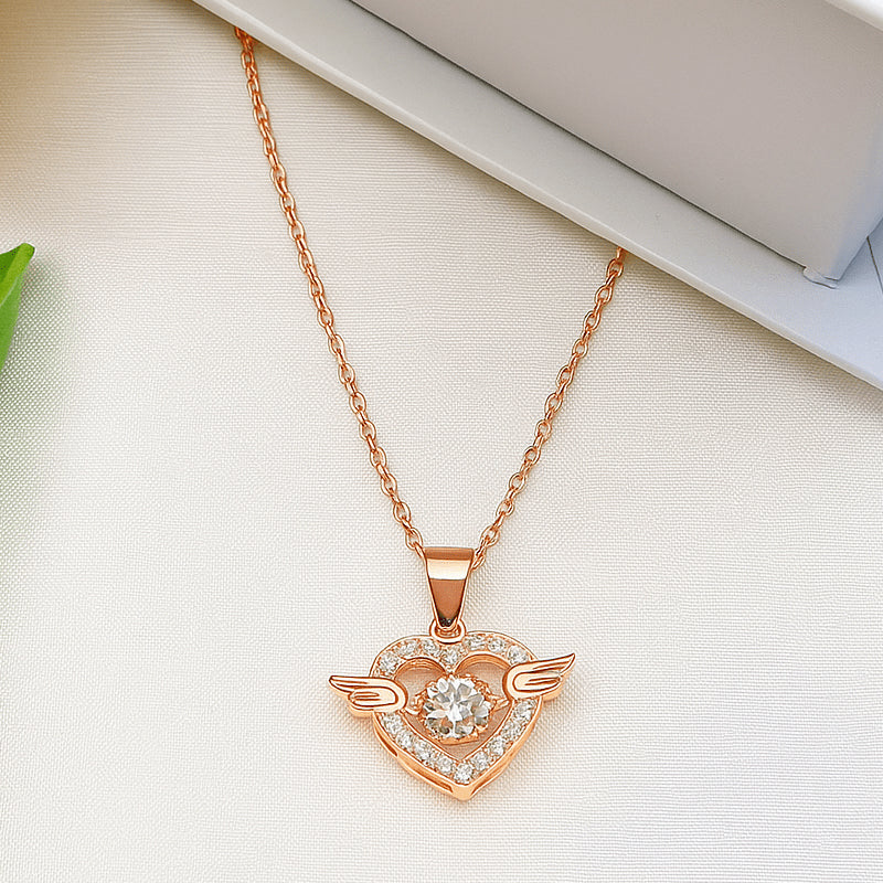 ДИЗАЙН НА СЪРЦЕТО И КРИЛАТА - Това колие съчетава класическо сърце с деликатни ангелски крила за нежен и грациозен вид. Топлото сърце действа успокояващо, а крилата придават лекота и приповдигнато настроение.