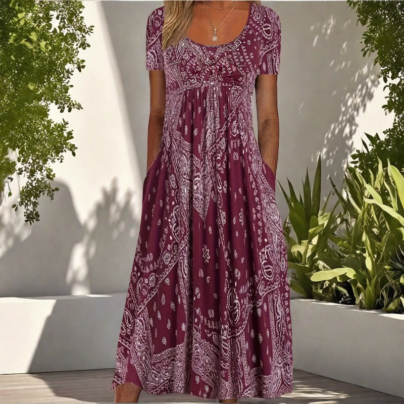 ЛАСКАТЕЛНА СВОБОДНА КРОЯ – Тази рокля ласкае всяка форма на тялото, като същевременно предлага изключителен комфорт. Фините плисета на талията добавят нотка елегантност и създават ефект на изтъняване, подчертавайки естествените ви извивки, без да се чувствате ограничаващи.