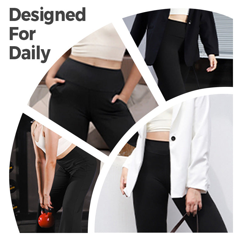 МНОГОФУНКЦИОНАЛЕН ДИЗАЙН ЗА 24/7 КОМФОРТ: Освен за йога сесии, тези панталони са подходящи и за тренировки във фитнеса, за вършене на поръчки или за релакс у дома. Дишащата, отблъскваща влагата материя ви осигурява комфорт при всички дейности, като същевременно поддържа елегантен и подреден външен вид.