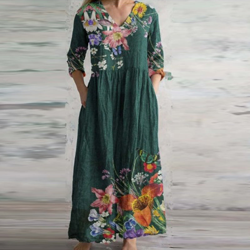 ЕЛЕГАНТЕН ДИЗАЙН С V-ОБРАЗНО ДЕКОЛТЕ - V-образното деколте визуално удължава шията и подчертава ключиците, добавяйки нотка на очарование. То също така предлага по-хладно усещане в сравнение с обло деколте, което го прави идеално за топли дни.