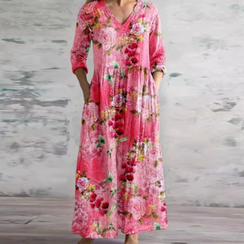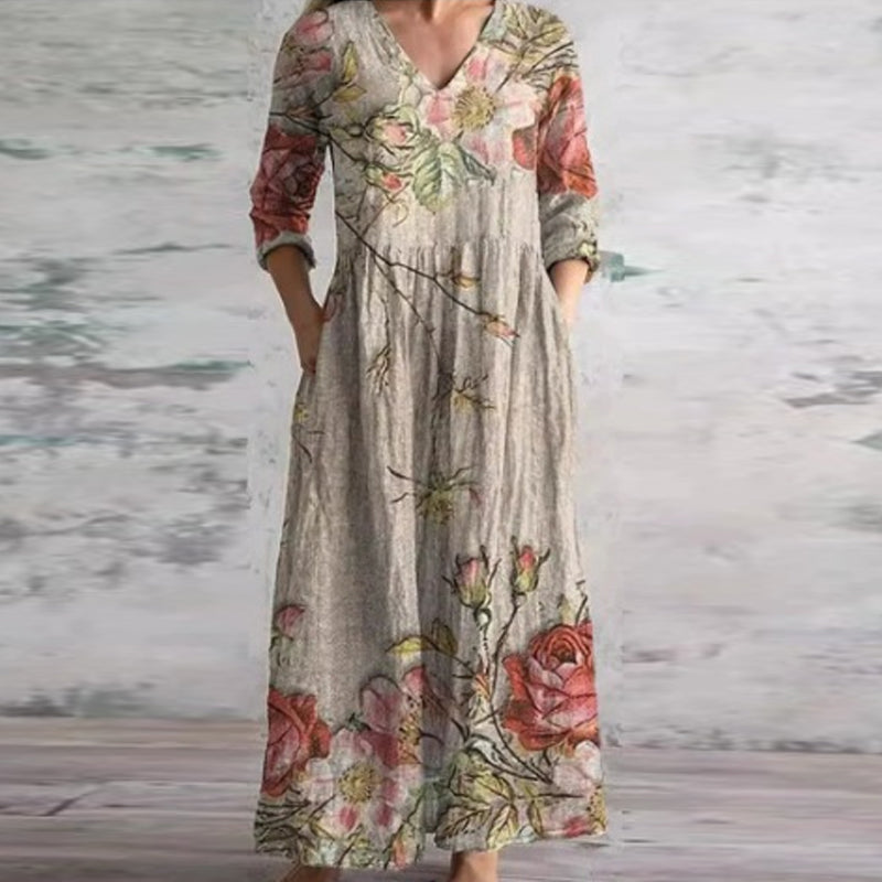 РЕЛАКСИРАНА СИЛУЕТА - Дизайнирана с свободна, плавна кройка, тази рокля пада естествено, за да подчертае всички типове телосложение и фигури, създавайки елегантен и изтънчен вид.
