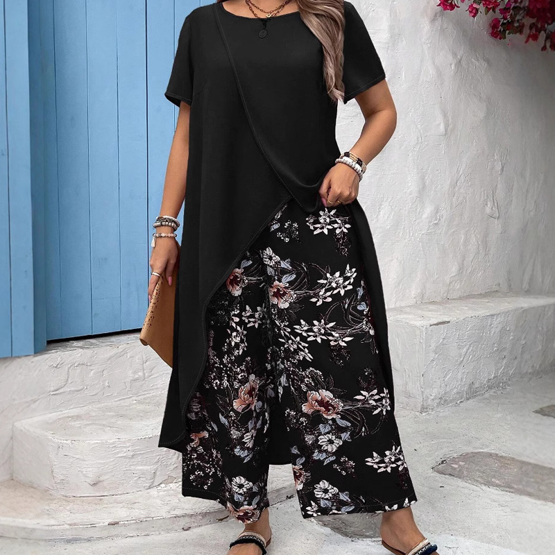 Пакетът включва: 1* Дамски едноцветен горнище и панталон с щампа.