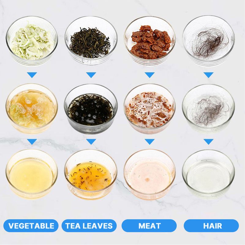* Мощна функция: Той може бързо да разтвори запушванията на тръбите, като например косми, хартия, сапунени остатъци, зеленчуци, плодове, хранителни остатъци, мазнини, месо и органични вещества.