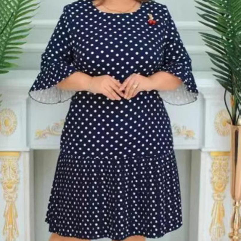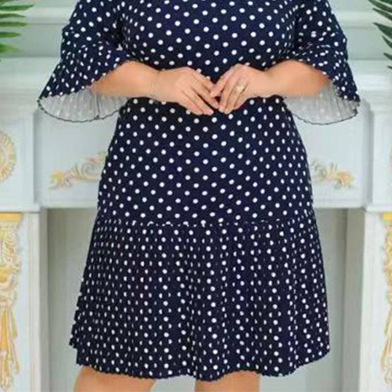 Пакетът включва: 1×Retro Polka Dot Ruffle Midi рокля