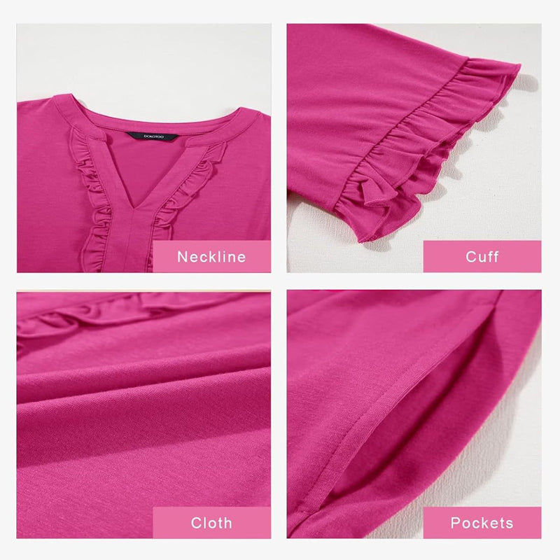 Пакетът включва: 1 * Жените Ruffle Trim V-Neck Tiered рокля