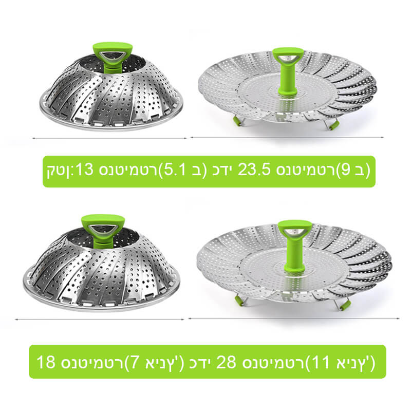 Диаметърът на сгънатата кошница за зеленчуци за готвене на пара е 6 инча. След разтягане на венчелистчетата тя се разширява до 11 инча. "Крилата", които се сгъват и разгъват, позволяват на кораба да пасва на различни размери тенджери/ тигани или на тенджера под налягане, превръщайки всеки тиган в кораб. Отваря се като водна лилия и се сгъва компактно, за да спести място за съхранение, за разлика от обемистите бамбукови пароварки.