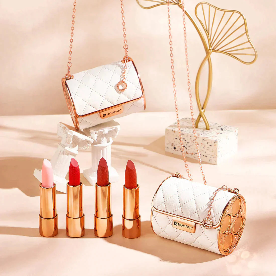Освежете красивите си устни с нашия комплект матови червила в очарователна чантичка с верижка!