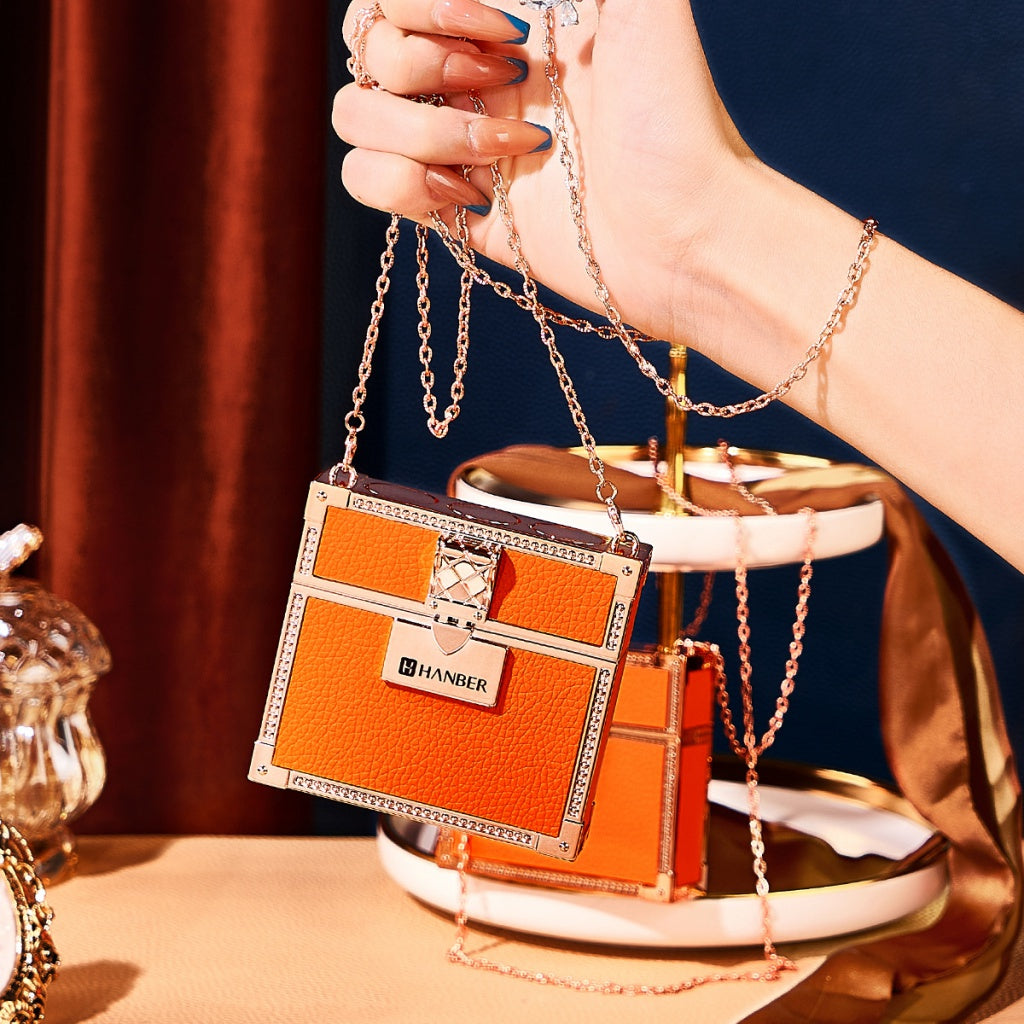 - Уникална подаръчна опаковка с чанта с бляскава верига, изискана и лесна за носене