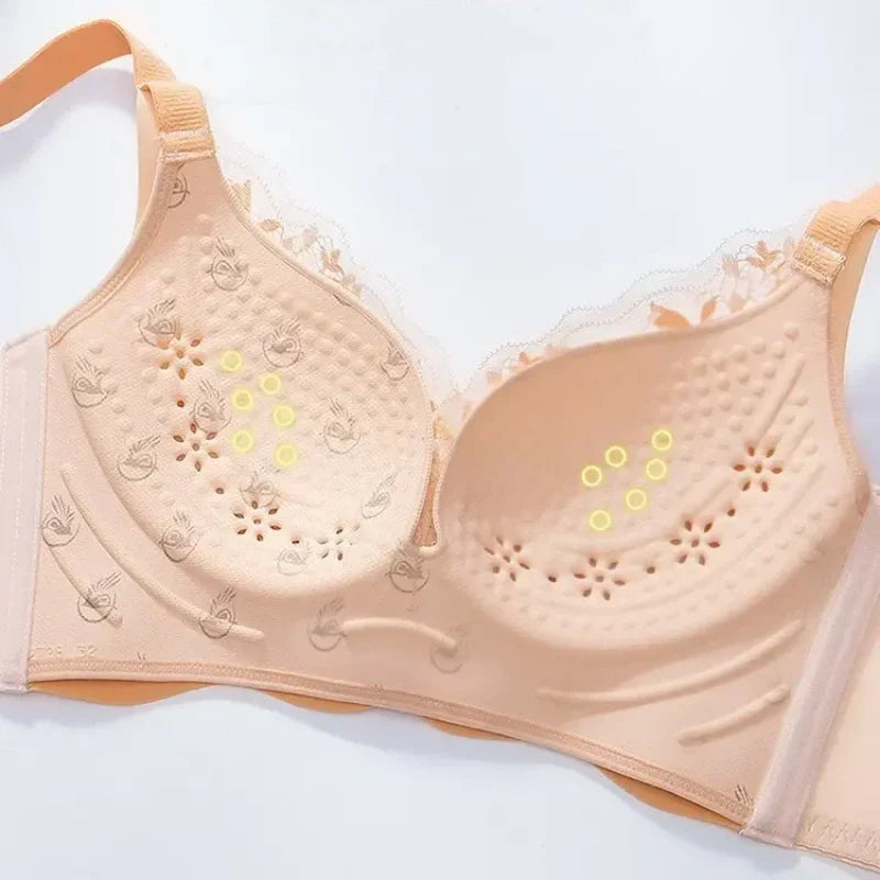 ТЪНКА И БИРКОВА КОНСТРУКЦИЯ - сутиенът е лек и има дишащи отвори с форма на цветни листенца, които предотвратяват прегряването. Той има и масажиращи частици, които нежно намаляват натиска и увеличават комфорта.