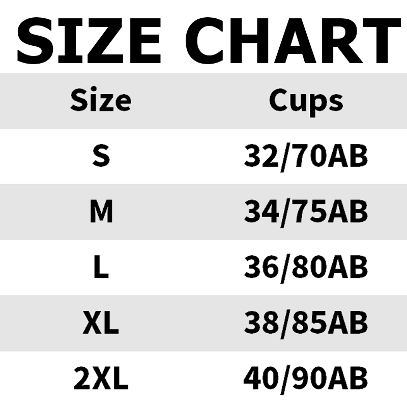 Размер: S (32/70AB), M (34/75AB), L (36/80AB), XL (38/85AB), 2XL (40/90AB)
