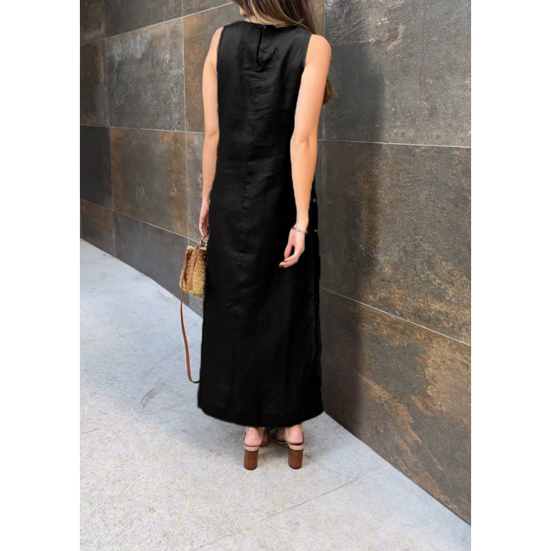 Стилен дизайн с бутони отстрани: Тази рокля има очарователен дизайн с бутони отстрани. Деликатните копчета придават елегантност и подобряват цялостната визия. Този дизайн е не само визуално привлекателен, но и практичен. Позволявайки ви да регулирате разкроя по ваш вкус, той придава изтънченост на облеклото ви, като същевременно запазва комфорта и гъвкавостта.