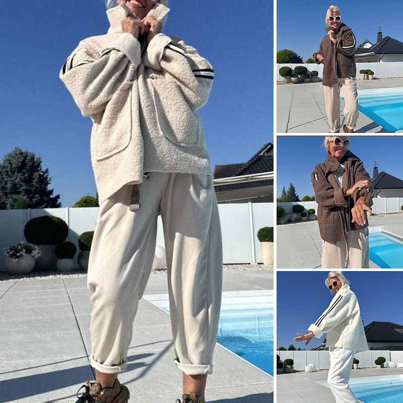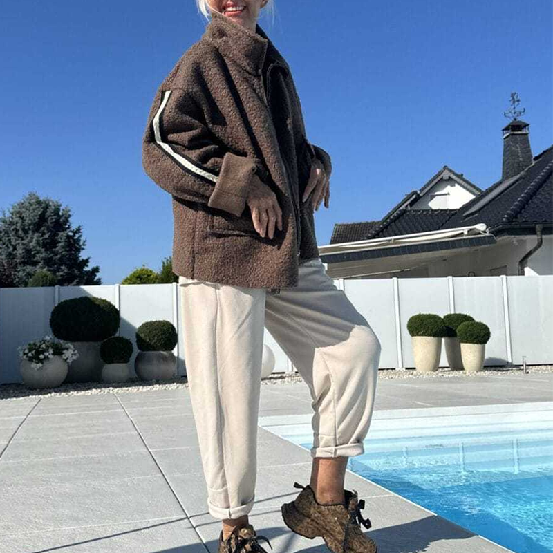 Пакетът включва: 1 * Дамско модно палто с райета от изкуствена овча кожа