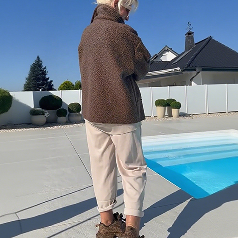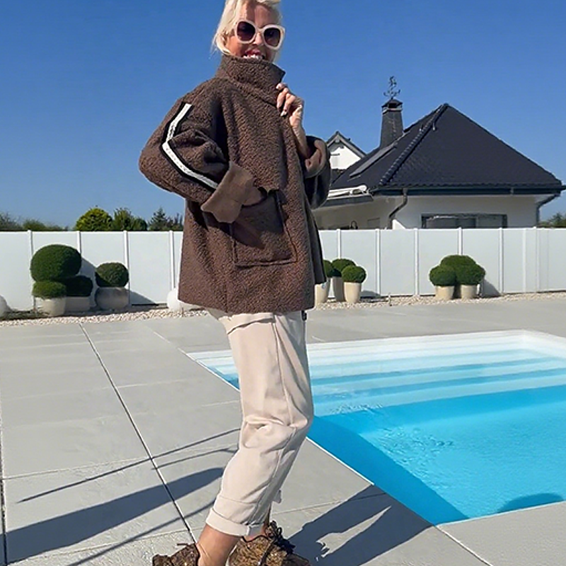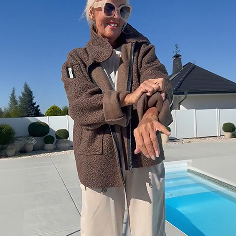 ПРЕМИУМ ИЗРАБОТКА ОТ ИЗКУСТВЕНА ОВЧА КОЖА - Насладете се на луксозното усещане и топлината на висококачествената изкуствена овча кожа. Плюшената вътрешна подплата създава уютна бариера срещу студения вятър, като същевременно поддържа дишащ комфорт, което я прави идеална за преходни климатични условия и студени градски среди.