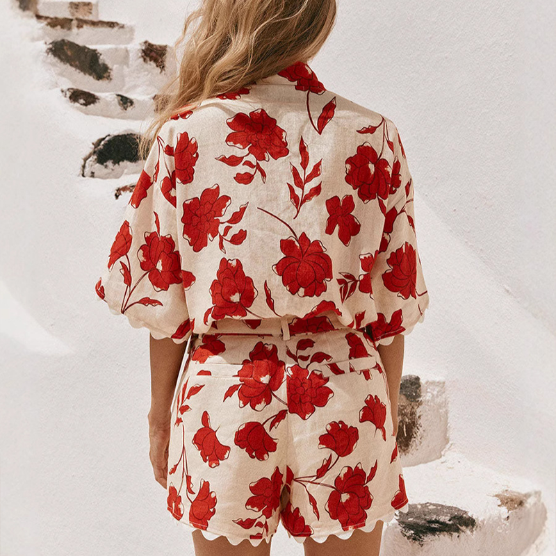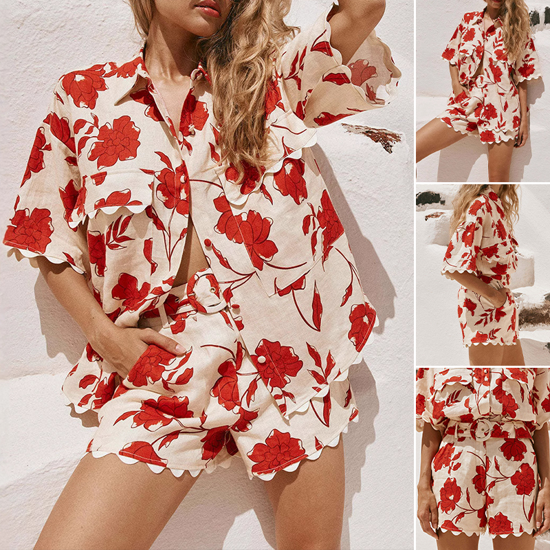 Включен пакет: 1 * Жените реколта флорален печат риза & шорти две части комплект