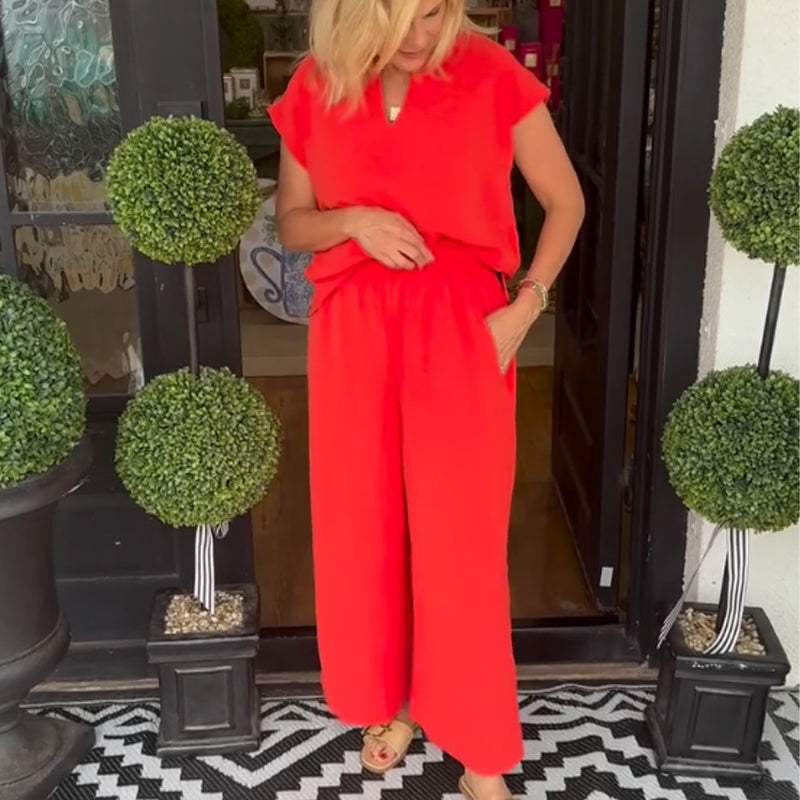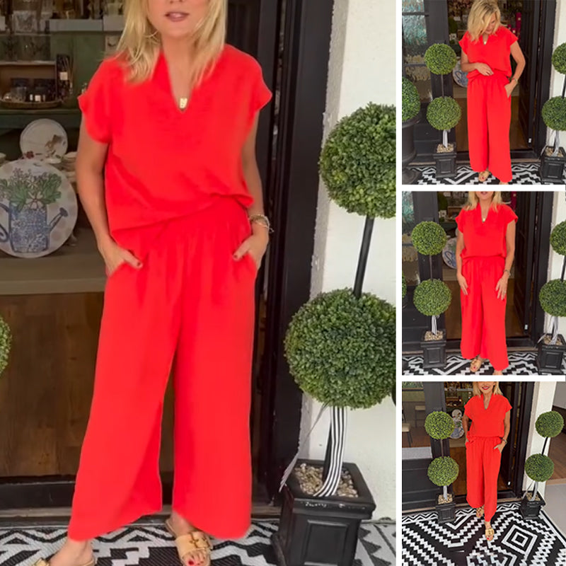 Package Includes: 1* Women's Solid Color Casual Two-Piece Set