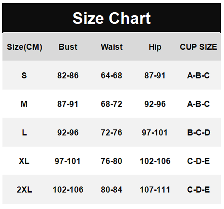 ПЪЛЕН РАЗМЕР: От размер S до 2XL, този бански костюм е подходящ за широк спектър от типове тяло, като същевременно поддържа стилно и сигурно прилягане. Всеки размер е внимателно подбран, за да гарантира комфорт и увереност, така че да можете да се наслаждавате на времето си във водата без притеснения.